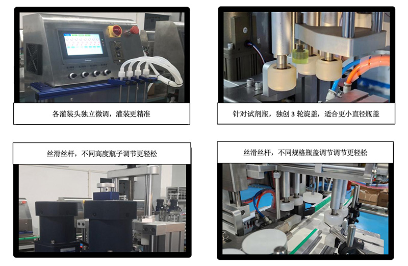 灌裝和旋蓋部分可通過(guò)手柄轉(zhuǎn)盤(pán)直接調(diào)整高度 |